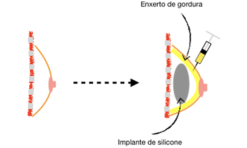 O aumento composto das mamas consiste na utilização de implantes de silicone associados ao enxerto de gordura. Após a lipoapiração de áreas de gordura localizada, a gordura é cuidadosamente preparada e injetada na mama.